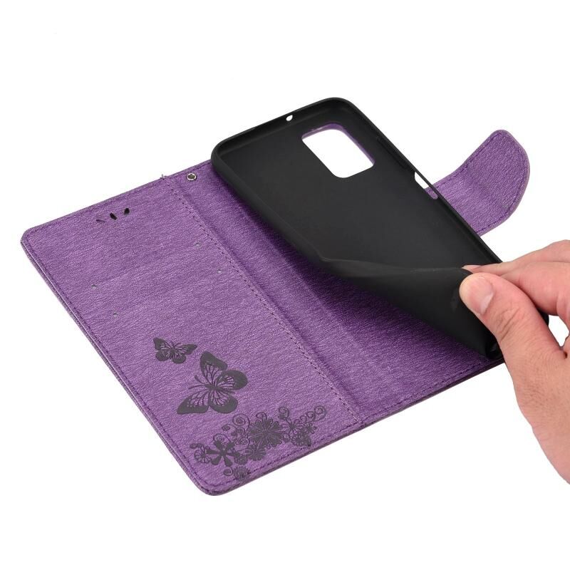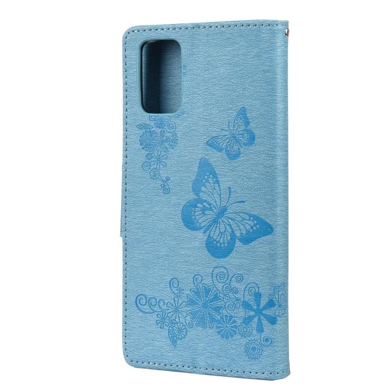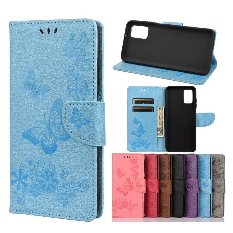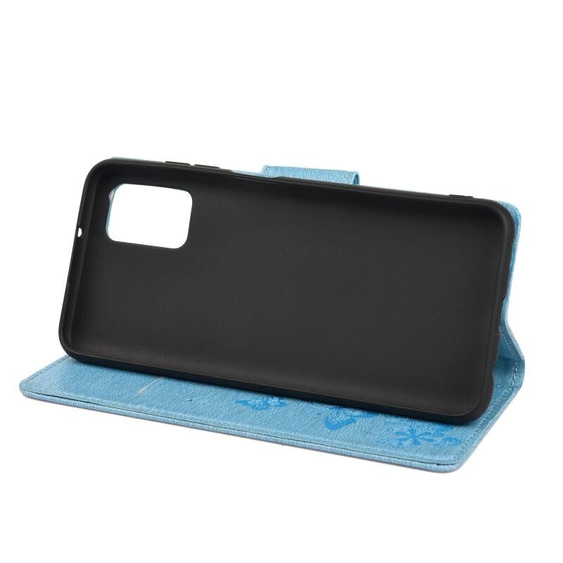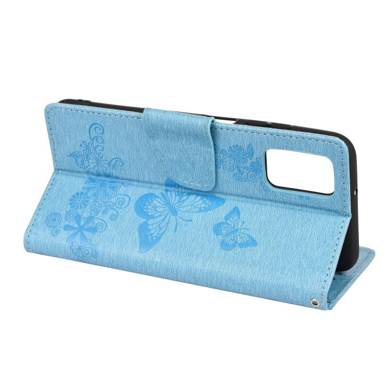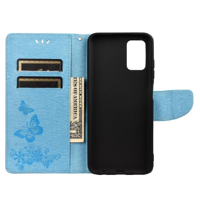 Θήκη Samsung Galaxy A03s 164mm, vintage, ανάγλυφη, με σχέδιο λουλουδιών και πεταλούδας, οριζόντια, από δέρμα με θήκη για κάρτες, στήριξη, πορτοφόλι και κορδόνι (Μπλε)