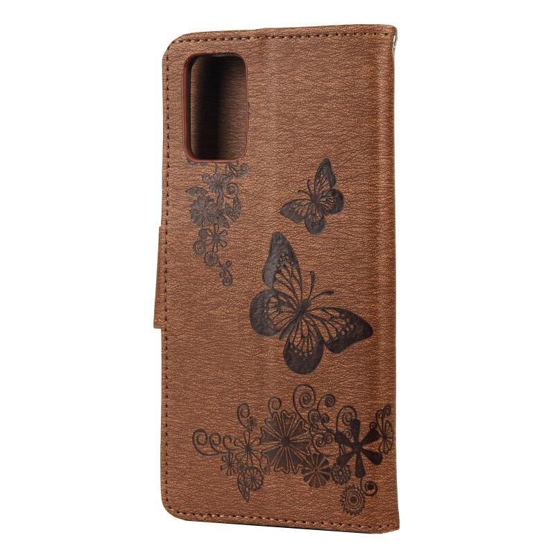 Θήκη Samsung Galaxy A03s 164mm, vintage, ανάγλυφη, με σχέδιο λουλουδιών και πεταλούδας, οριζόντια, από δέρμα με θήκη για κάρτες, στήριξη, πορτοφόλι και κορδόνι (Καφέ)