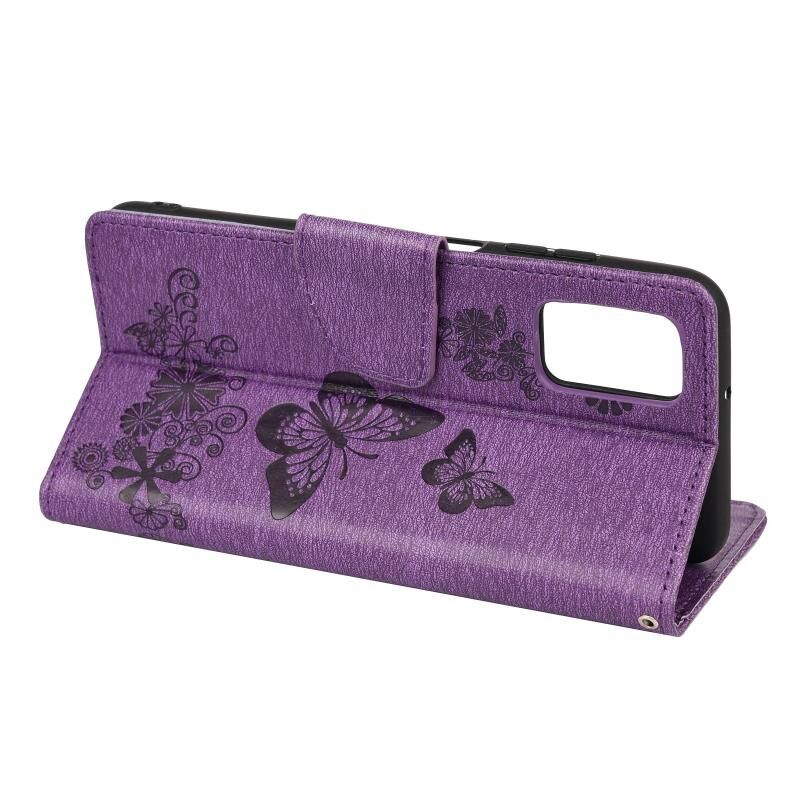 Θήκη Samsung Galaxy A03s 164mm, vintage, ανάγλυφη, με σχέδιο λουλουδιών και πεταλούδας, οριζόντια, από δέρμα με θήκη για κάρτες, στήριξη, πορτοφόλι και κορδόνι (Μωβ)