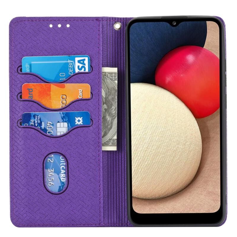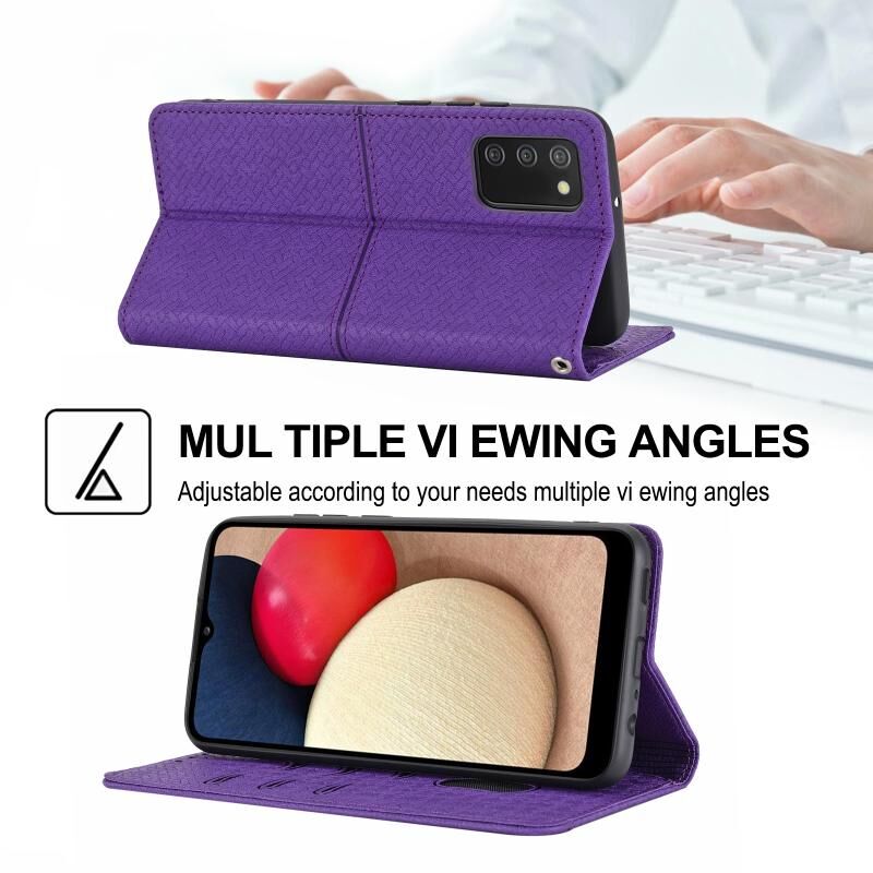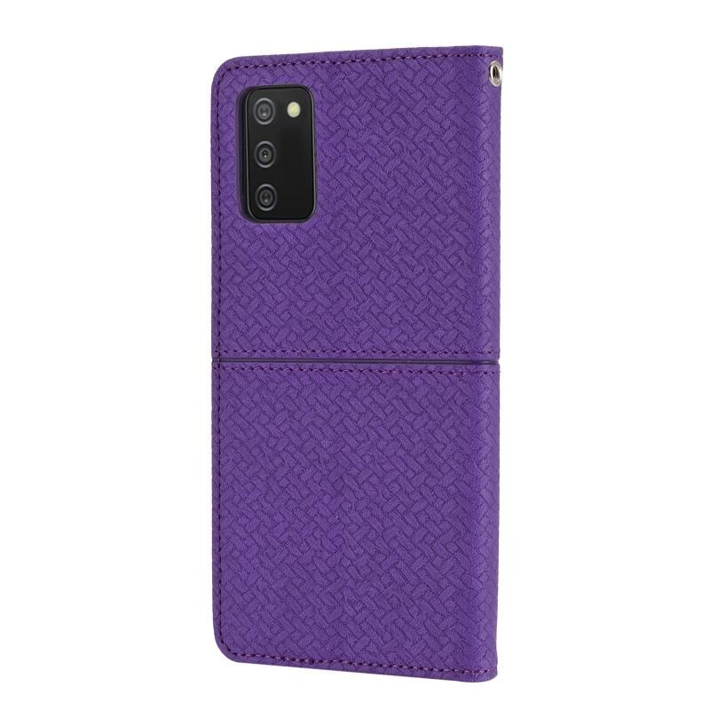 Για Samsung Galaxy A03s 164mm Υφαντή υφή ραφή μαγνητική οριζόντια Flip PU δέρμα υπόθεση με θήκη & υποδοχές για κάρτες & πορτοφόλι & κορδόνι (Μωβ)