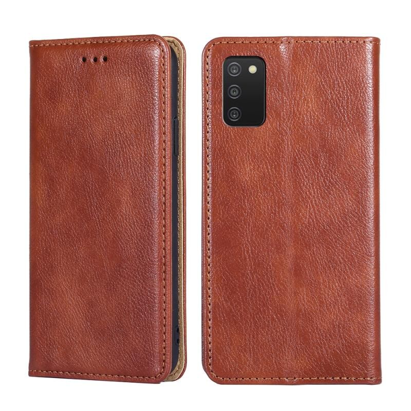 Για το Samsung Galaxy A03s 165.85mm γυαλιστερό λάδι στερεό χρώμα μαγνητικό δέρμα τηλέφωνο υπόθεση (Καφέ)