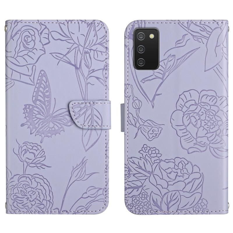 Θήκη τηλεφώνου δερμάτινη ανάγλυφη με αίσθηση αφής, για Samsung Galaxy A03s 165.85mm, σχέδιο πεταλούδας και παιωνίας (Κόκκινο)