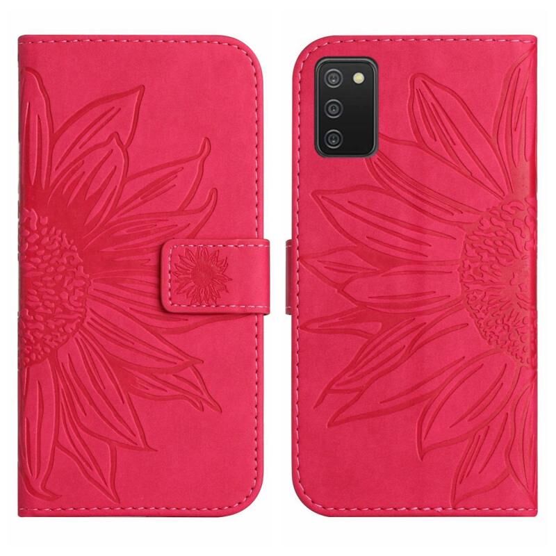 Για το Samsung Galaxy A03S 165.85mm δέρμα αίσθηση Sun Flower μοτίβο Flip δέρμα τηλέφωνο υπόθεση με κορδόνι (Rose Red)