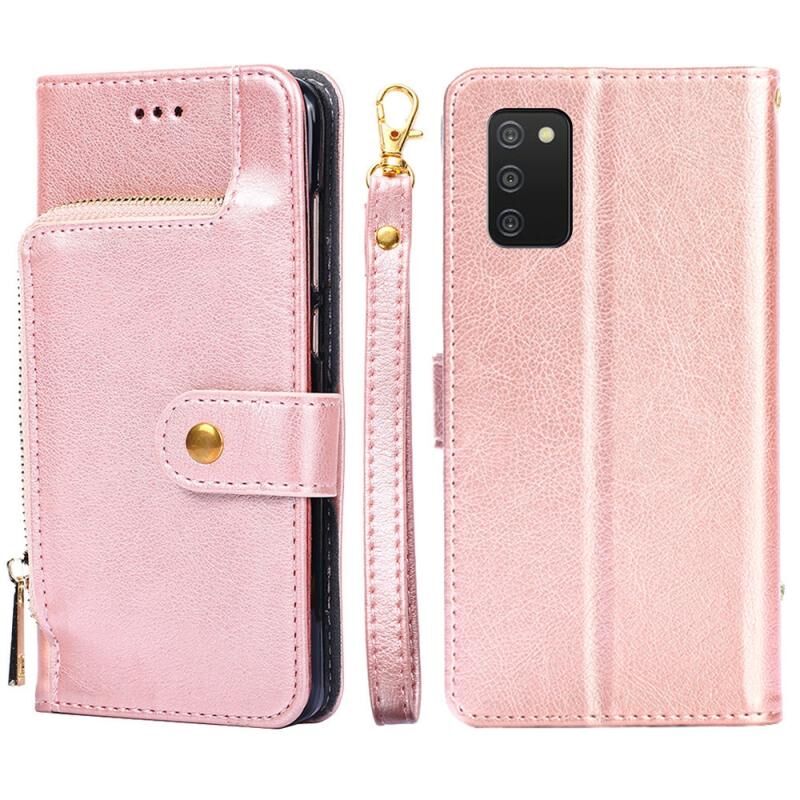 Για το Samsung Galaxy A03s 165.85mm φερμουάρ τσάντα PU + TPU οριζόντια Flip δέρμα τηλέφωνο υπόθεση (Rose Gold)
