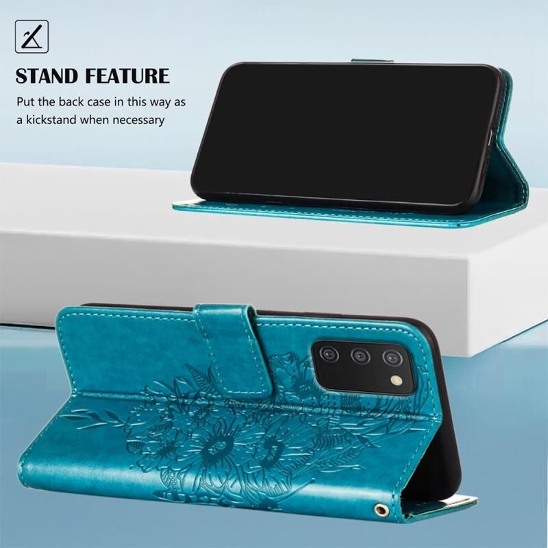 Θήκη τηλεφώνου δερμάτινη με ανάγλυφο σχέδιο πεταλούδας για Samsung Galaxy A03s 165.8mm (Γκρι)