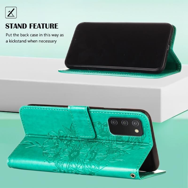 Θήκη τηλεφώνου δερμάτινη με ανάγλυφο σχέδιο πεταλούδας για Samsung Galaxy A03s 165.8mm (Γκρι)