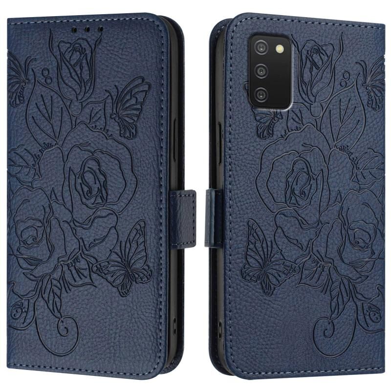 Για Samsung Galaxy A03s 165.8mm ανάγλυφο Rose RFID Anti-theft Δερμάτινη θήκη τηλεφώνου (σκούρο μπλε)