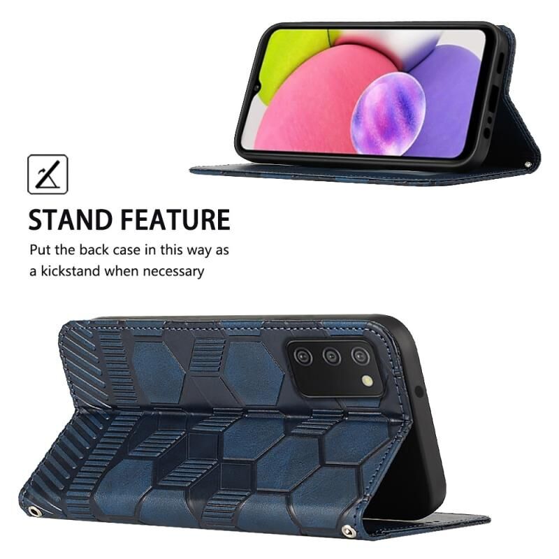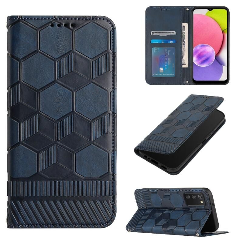 Για Samsung Galaxy A03s 166.5mm έκδοση ΕΕ ποδοσφαίρου υφή μαγνητική δερμάτινη θήκη Flip τηλέφωνο (σκούρο μπλε)