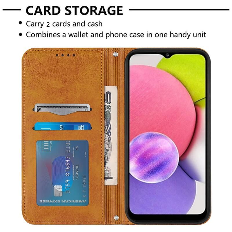 Για Samsung Galaxy A03s 166.5mm έκδοση ΕΕ ποδοσφαίρου υφή μαγνητικό δέρμα Flip υπόθεση τηλεφώνου (χακί)