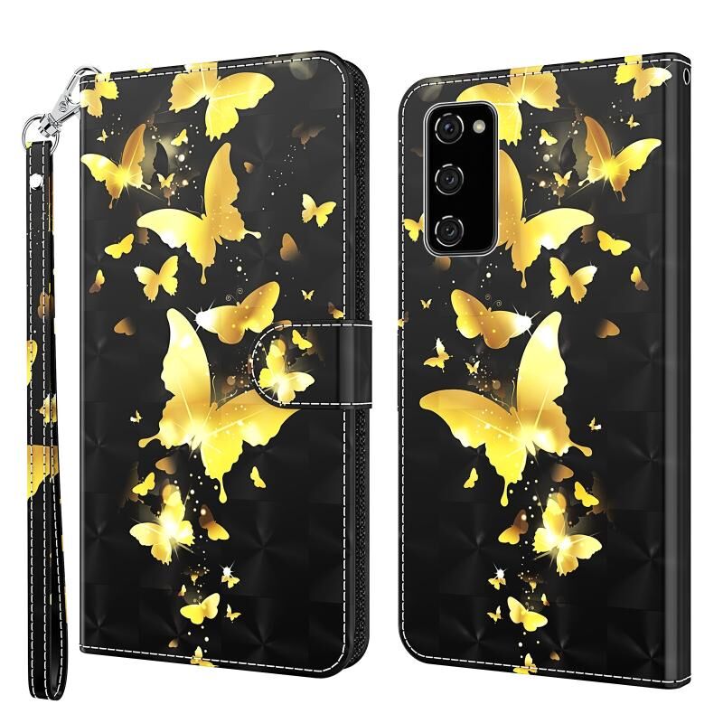 Θήκη κινητού τηλεφώνου για Samsung Galaxy A03s 166mm, με σχέδιο 3D ζωγραφικής από TPU + PU δέρμα (Χρυσή Πεταλούδα)