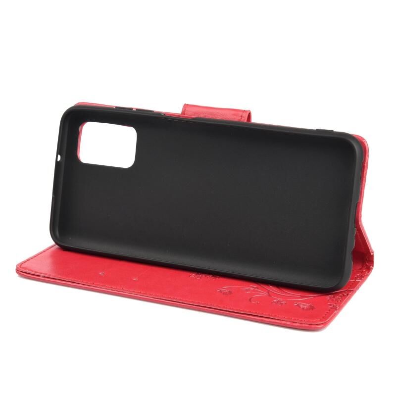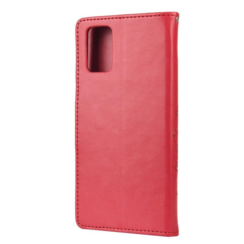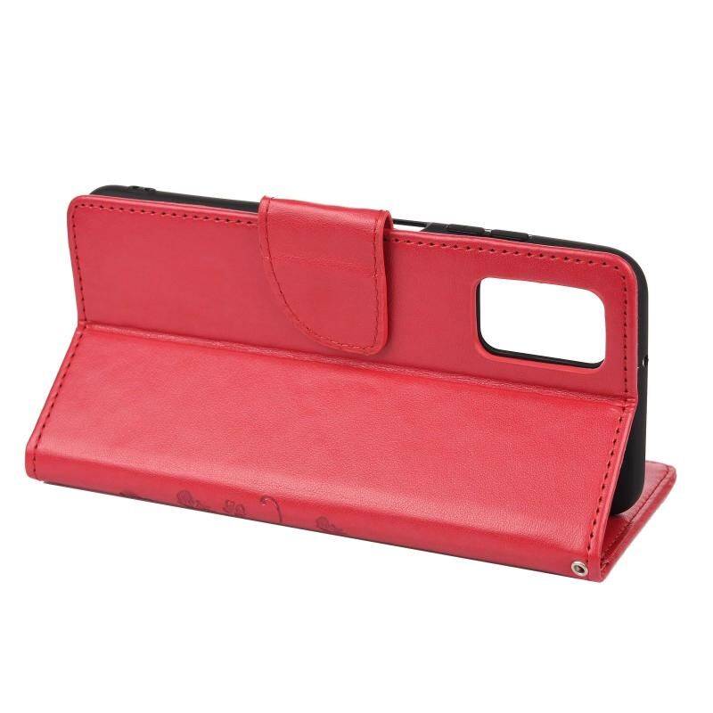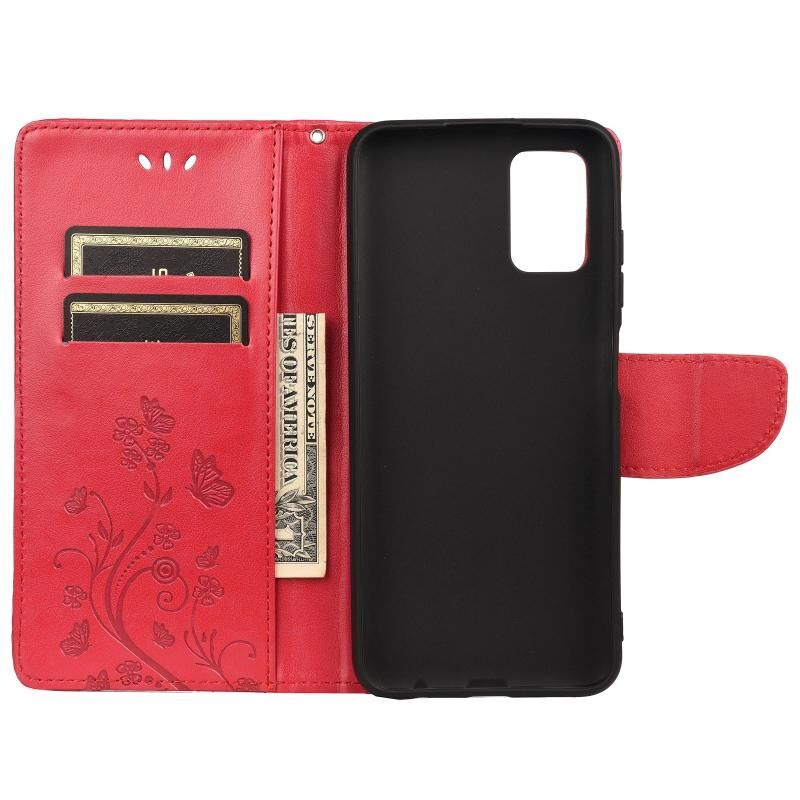 Θήκη δέρματος οριζόντιας αναδίπλωσης με σχέδιο πεταλούδας και λουλουδιών για Samsung Galaxy A03s 166mm με βάση & υποδοχές καρτών & πορτοφόλι (Κόκκινο)