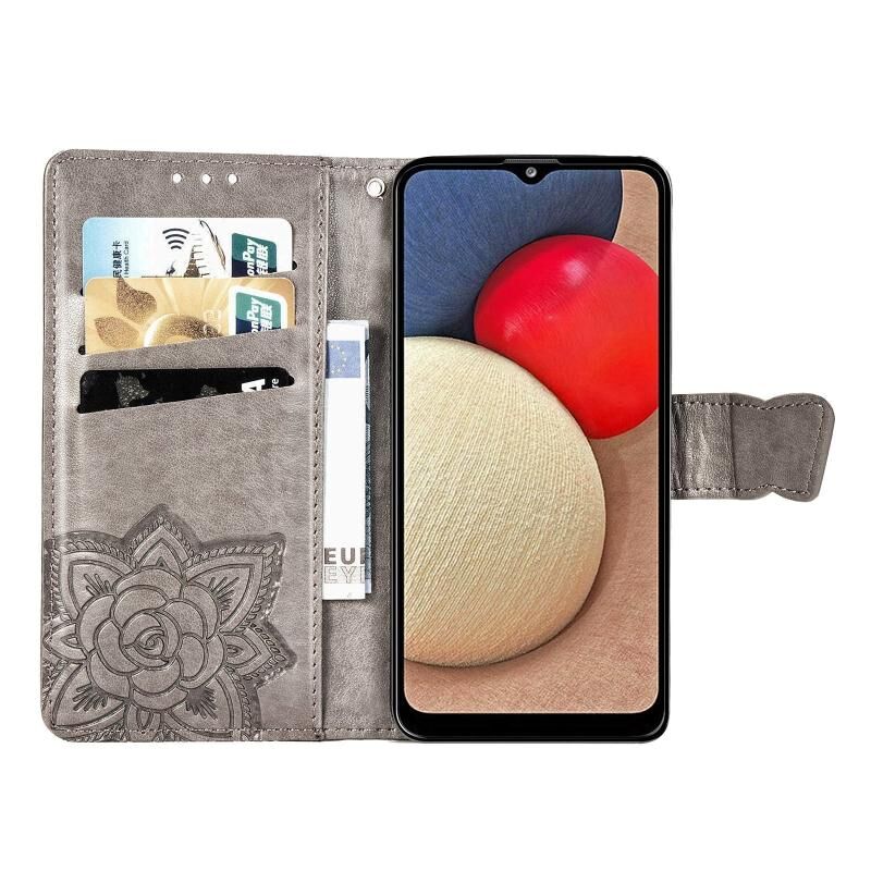 Για Samsung Galaxy A03s 166mm πεταλούδα αγάπη λουλούδια ανάγλυφο οριζόντια Flip δερμάτινη θήκη με κάτοχο & υποδοχές για κάρτες & πορτοφόλι & κορδόνι (γκρι)