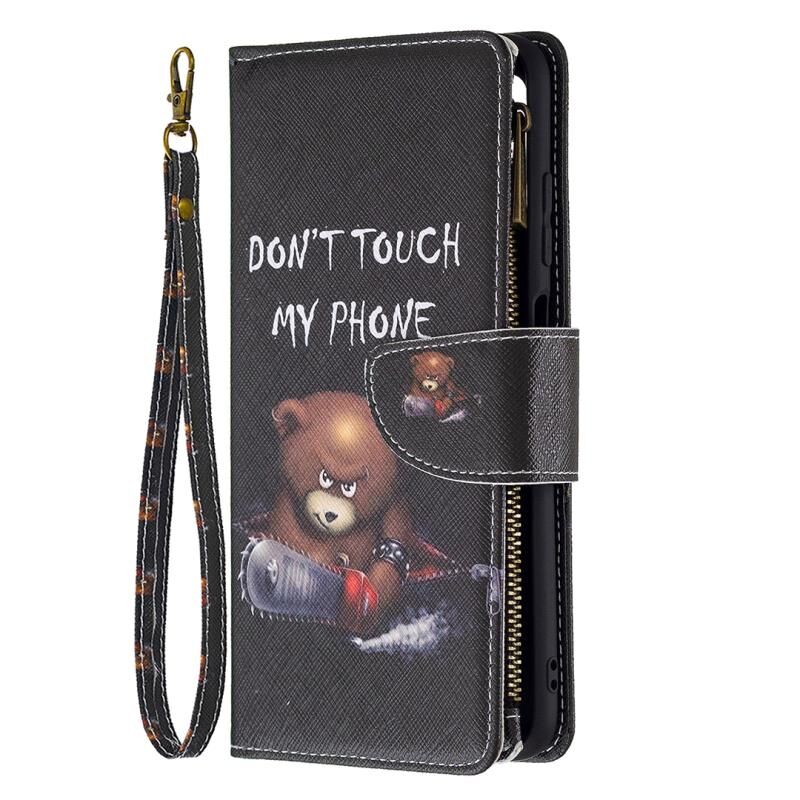 Θήκη τηλεφώνου Samsung Galaxy A03s 166mm με φερμουάρ και δέρμα, με έγχρωμο σχέδιο (Αρκούδα)