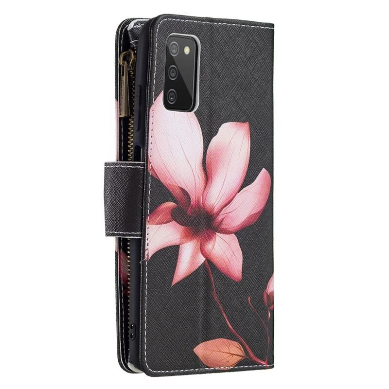 Θήκη τηλεφώνου Samsung Galaxy A03s 166mm με έγχρωμο σχέδιο και φερμουάρ από δέρμα (Λωτός)