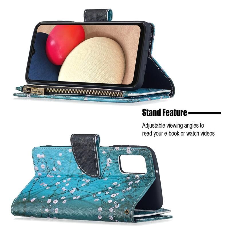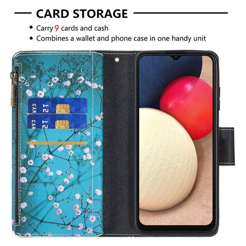 Θήκη τηλεφώνου Samsung Galaxy A03s 166mm με έγχρωμο σχέδιο και φερμουάρ από δέρμα (Λουλούδι Δαμασκηνιάς)