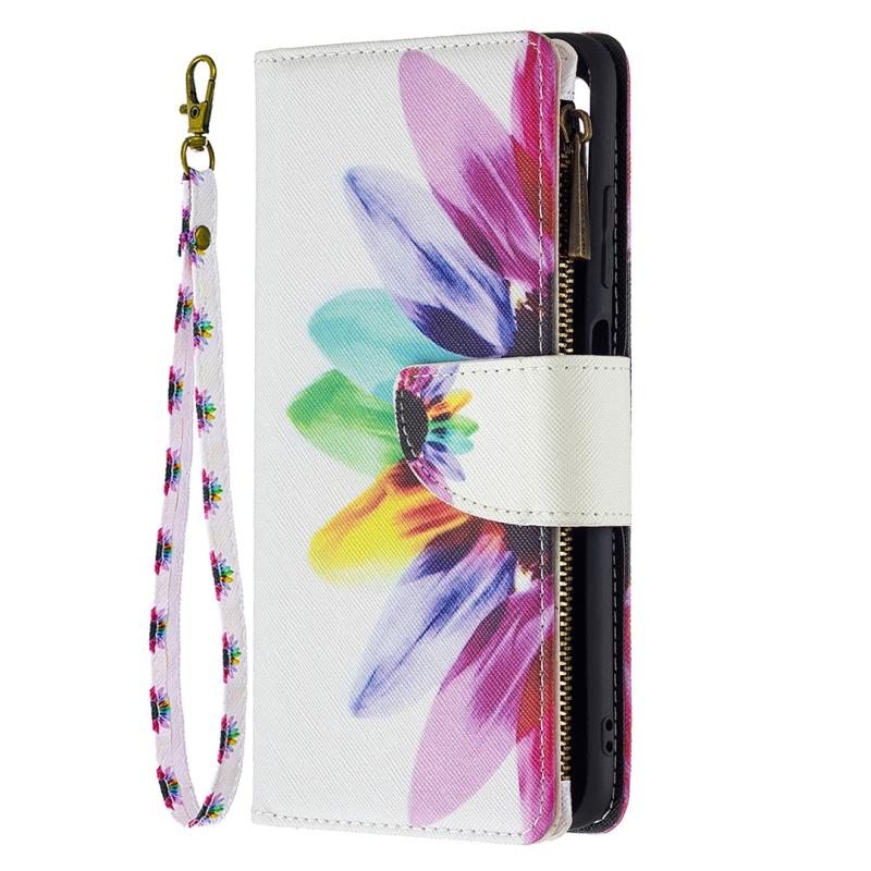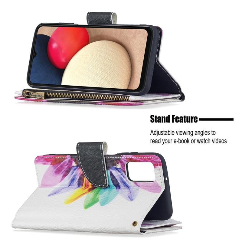 For Samsung Galaxy A03s 166mm Colored Drawing Zipper Leather Phone Case(Sun Flower)