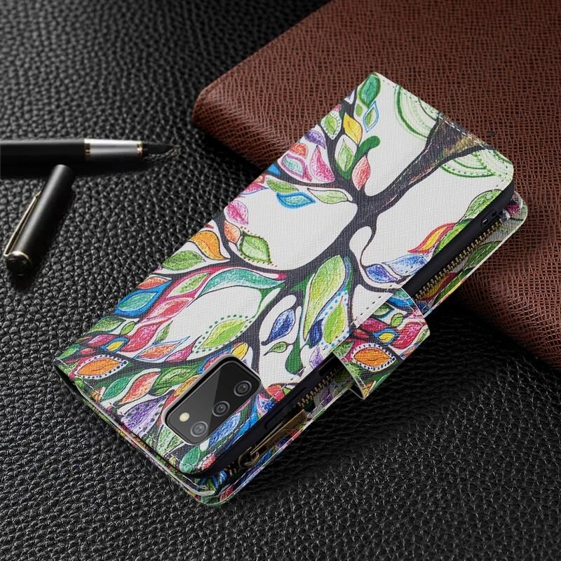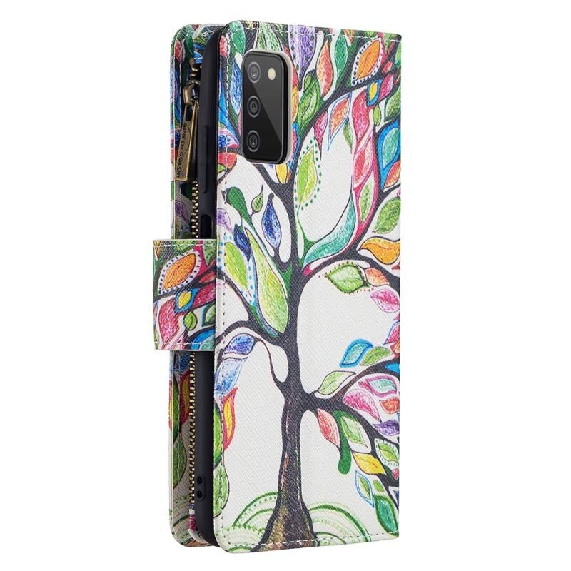 Θήκη τηλεφώνου Samsung Galaxy A03s 166mm με έγχρωμο σχέδιο, δερμάτινη με φερμουάρ (Δέντρο)