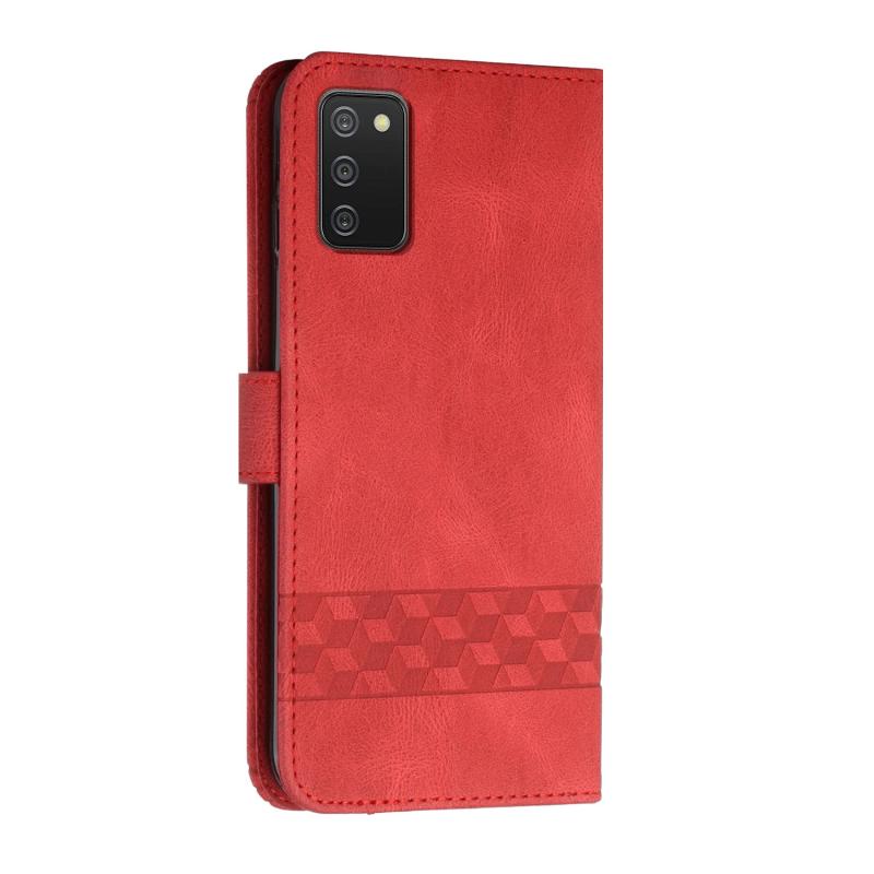 Θήκη τηλεφώνου Samsung Galaxy A03s 166mm, δερμάτινη, τύπου flip, με υφή κυβικού δέρματος (Κόκκινο)