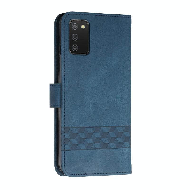 Θήκη τηλεφώνου Samsung Galaxy A03s 166mm, δερμάτινη, τύπου flip, με υφή κυβικού δέρματος (Βασιλικό μπλε)