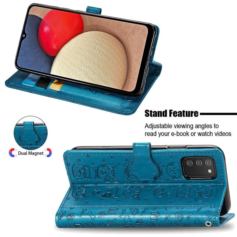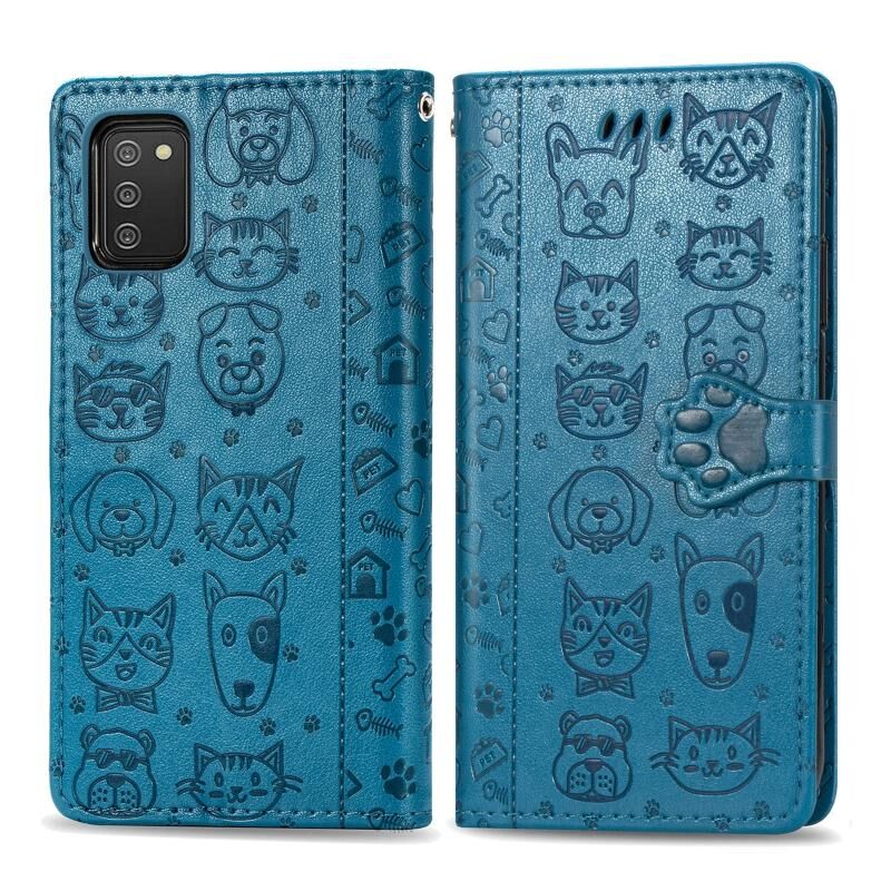 Για Samsung Galaxy A03s 166mm Χαριτωμένη Θήκη Δέρματος Οριζόντιας Αναδίπλωσης με ανάγλυφα σχέδια Γάτας και Σκύλου με Στήριξη & Θήκες Καρτών & Πορτοφόλι & Λουρί (Μπλε)