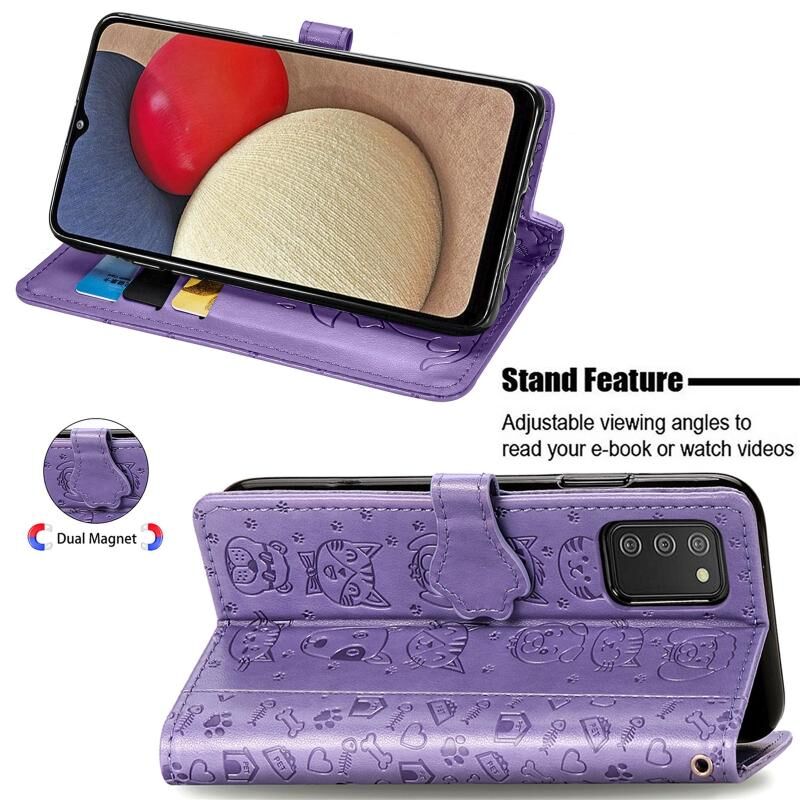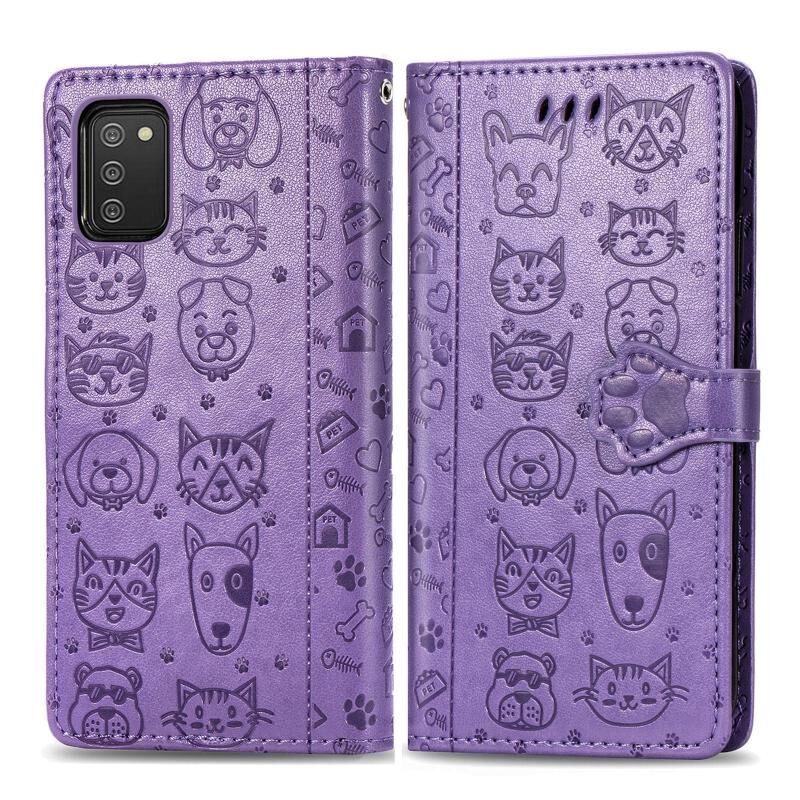 Για Samsung Galaxy A03s 166mm Χαριτωμένη Θήκη Δέρματος Οριζόντιας Αναδίπλωσης με ανάγλυφα σχέδια Γάτας και Σκύλου με Στήριξη & Θήκες Καρτών & Πορτοφόλι & Λουρί (Ροζ)