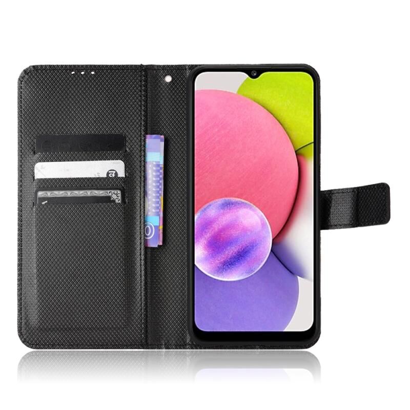 Για Samsung Galaxy A03s 166mm Diamond Texture δέρμα τηλέφωνο υπόθεση (Μαύρο)