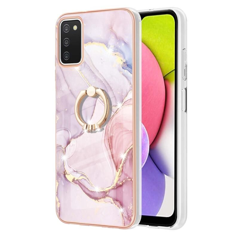 Θήκη για Samsung Galaxy A03s 166mm με Επικάλυψη Ηλεκτρολυτικής Μαρμάρου IMD TPU Αντικραδασμική με Δακτύλιο Στήριξης (Μωβ 002)