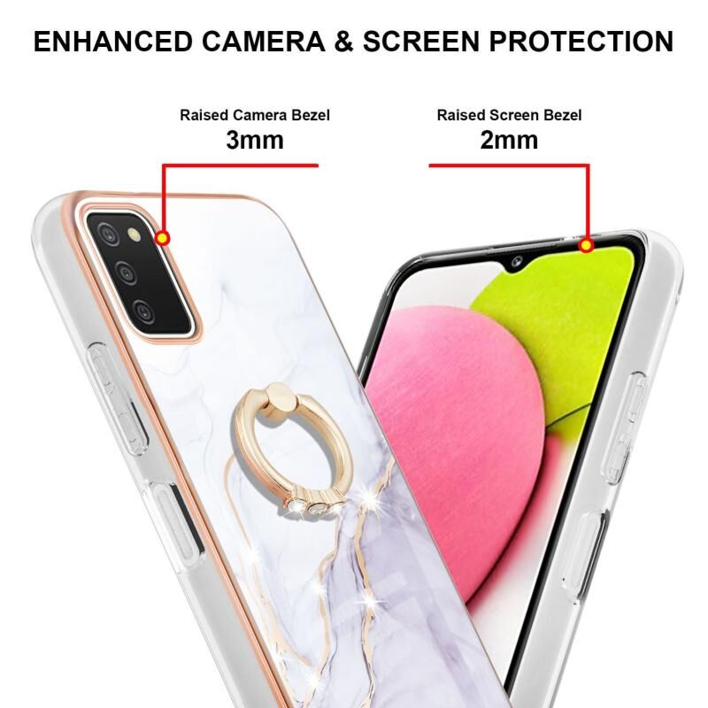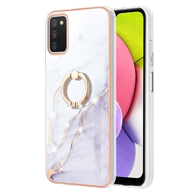 Θήκη για Samsung Galaxy A03s 166mm με Επικάλυψη Ηλεκτρολυτικής Μαρμάρου IMD TPU Αντικραδασμική με Δακτύλιο Στήριξης (Μωβ 002)