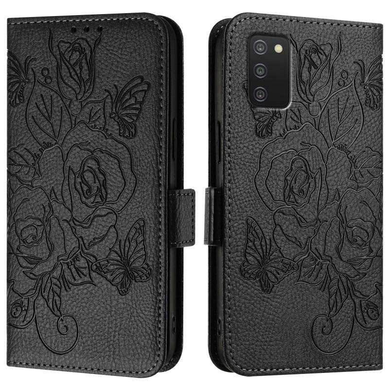 Για Samsung Galaxy A03s 166mm ανάγλυφο Rose RFID Anti-theft δερμάτινη θήκη τηλεφώνου (Μαύρο)