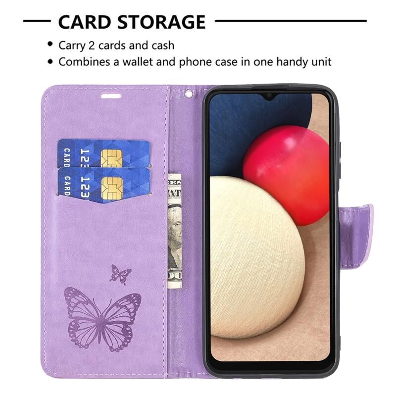 Για Samsung Galaxy A03s 166mm ανάγλυφο δύο πεταλούδες δερμάτινη θήκη τηλεφώνου (Μωβ)