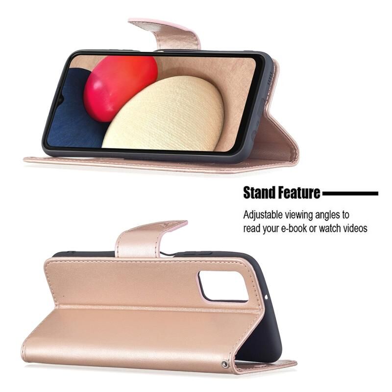 Για Samsung Galaxy A03s 166mm ανάγλυφο δύο πεταλούδες δερμάτινη θήκη τηλεφώνου (ροζ χρυσό)