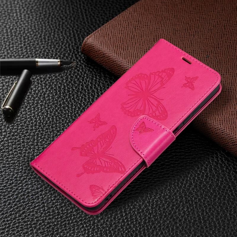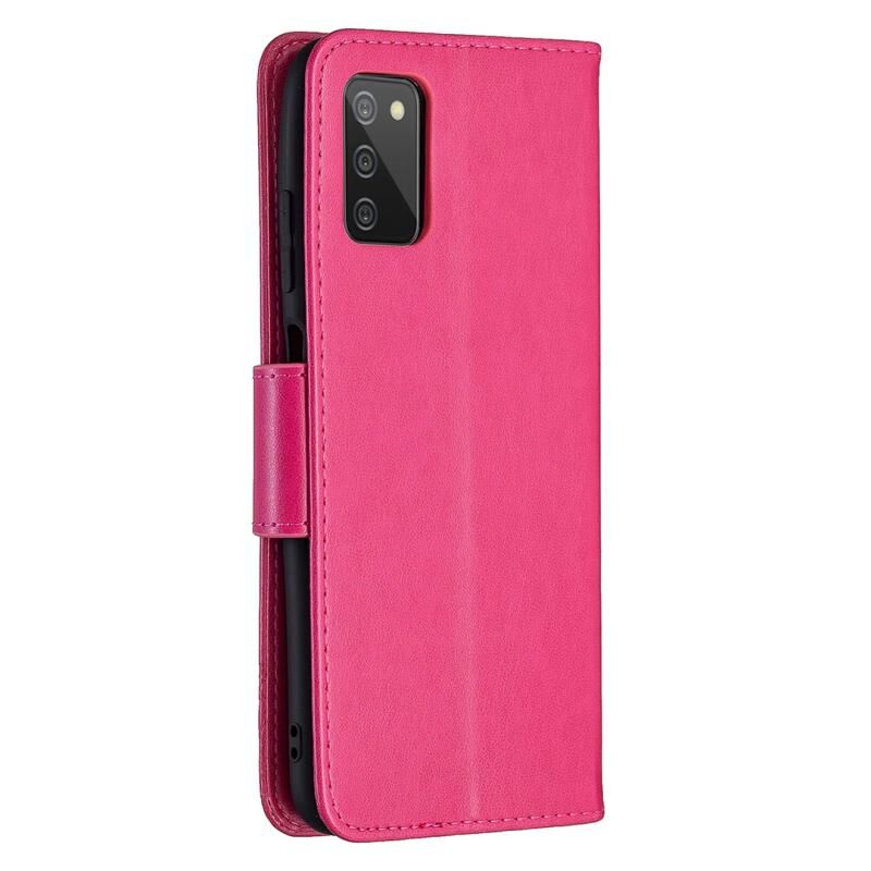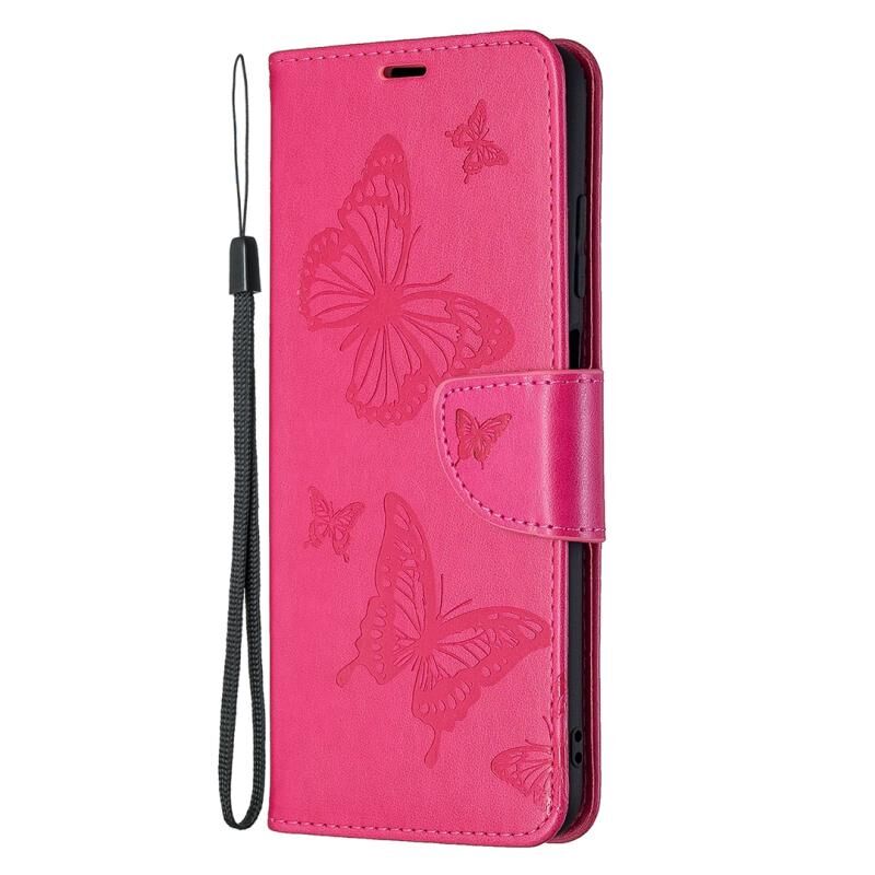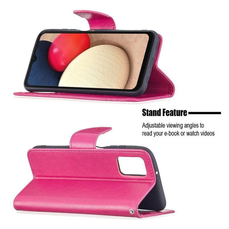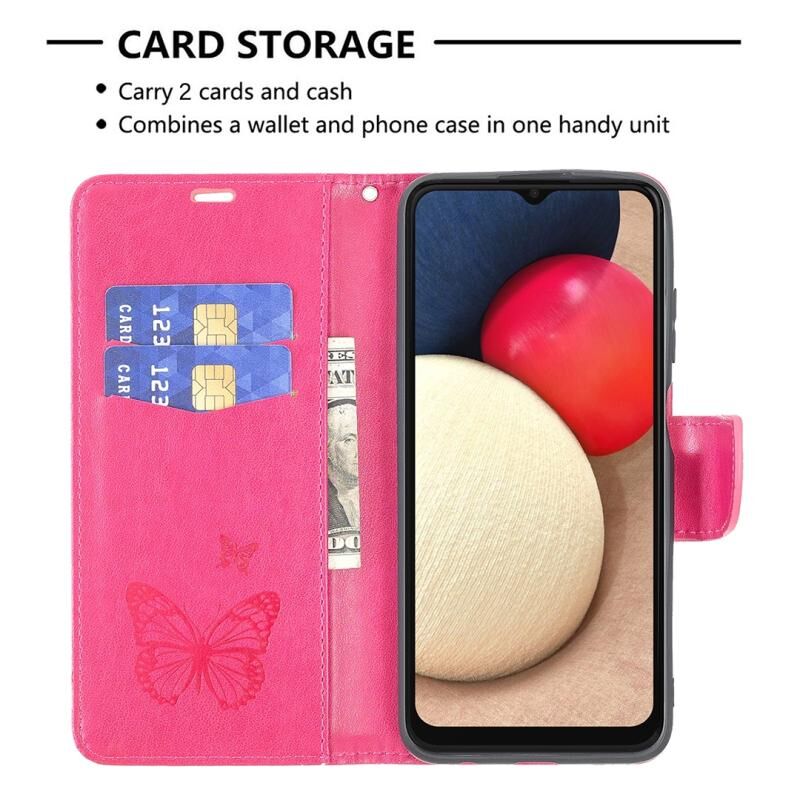 Για Samsung Galaxy A03s 166mm ανάγλυφο δύο πεταλούδες δερμάτινη θήκη τηλεφώνου (Ροζέ κόκκινο)
