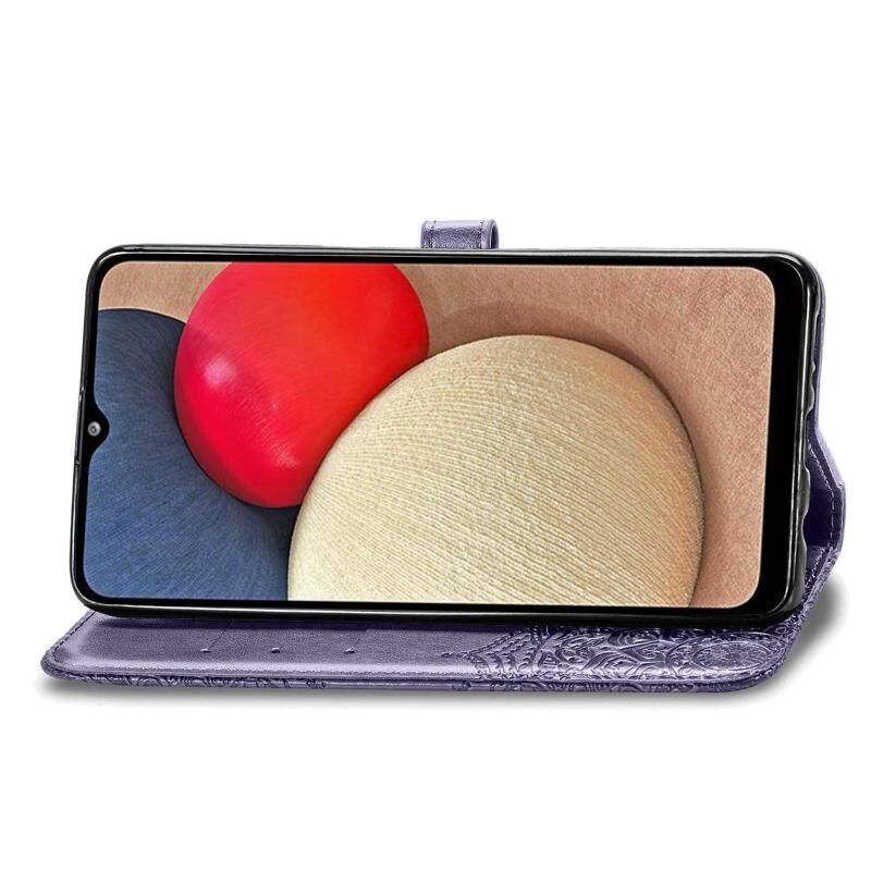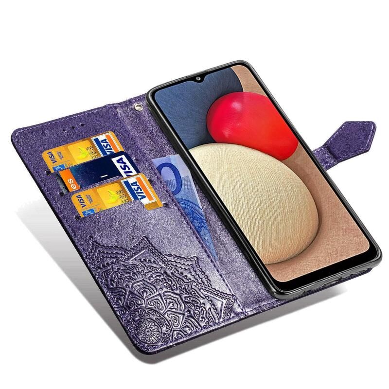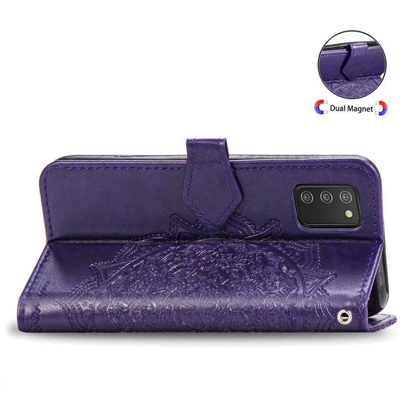 Για Samsung Galaxy A03s 166mm Mandala λουλούδι ανάγλυφο οριζόντια Flip δερμάτινη θήκη με θήκη & τρεις υποδοχές για κάρτες & πορτοφόλι & κορδόνι (μωβ)