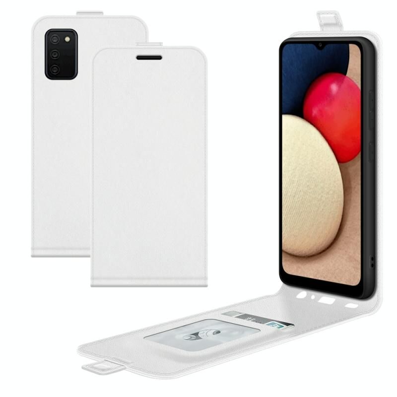 Θήκη προστασίας δέρματος με κάθετη αναδίπλωση για Samsung Galaxy A03s 166mm R64 με υφή, με θήκες για κάρτες & κορνίζα φωτογραφιών (Μαύρο)