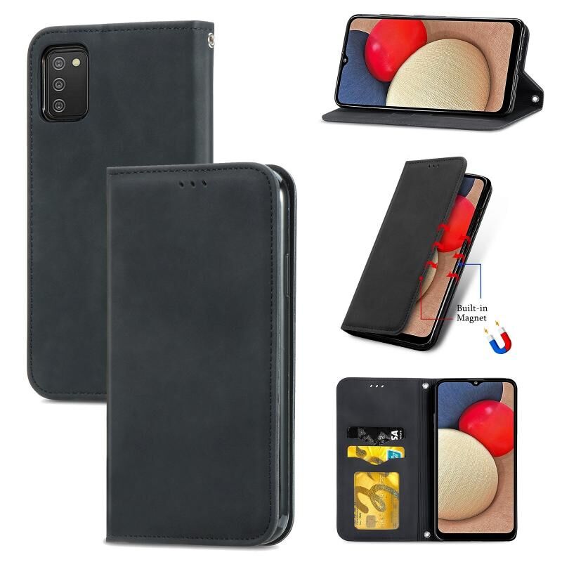 Για Samsung Galaxy A03s 166mm Retro Skin Feel Μαγνητική οριζόντια Flip δερμάτινη θήκη με θήκη & υποδοχές για κάρτες & πορτοφόλι & κορνίζα φωτογραφιών (Μαύρο)