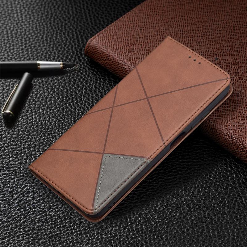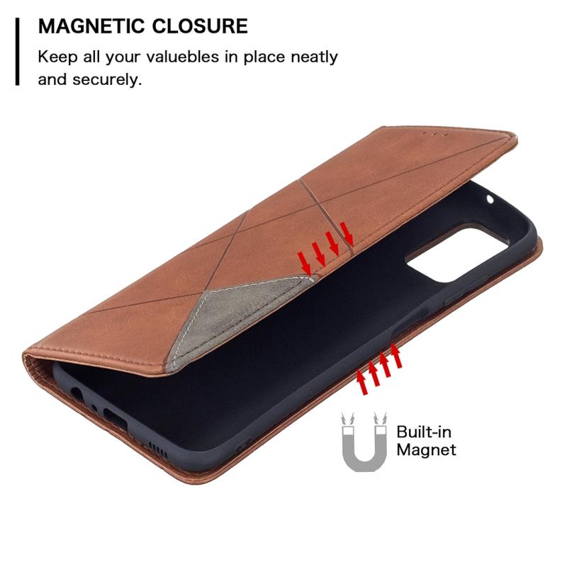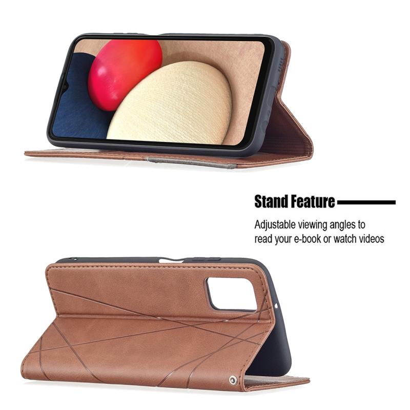 Θήκη τηλεφώνου Samsung Galaxy A03s 166mm με μαγνητικό δέρμα και υφή ρόμβου (Καφέ)