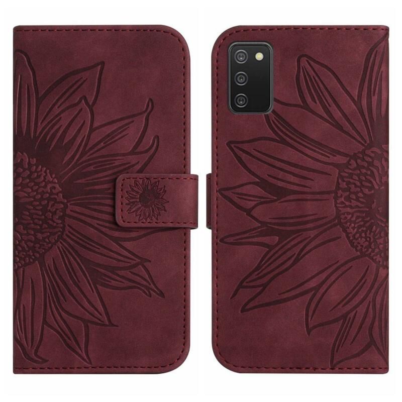 Για το Samsung Galaxy A03S 166mm δέρμα αίσθηση Sun Flower μοτίβο Flip δέρμα τηλέφωνο υπόθεση με κορδόνι (Κρασοκόκκινο)