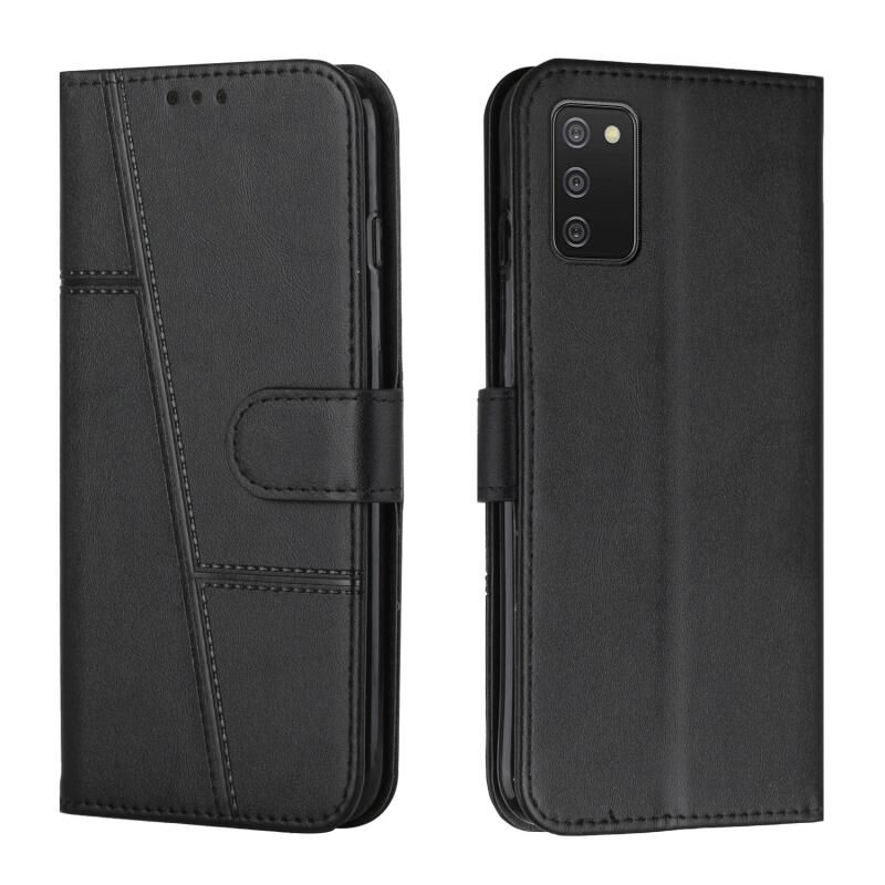Για Samsung Galaxy A03s 166mm ραφή μοσχάρι υφή πόρπη δέρμα τηλέφωνο υπόθεση (μαύρο)