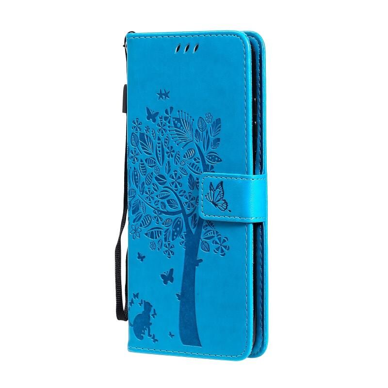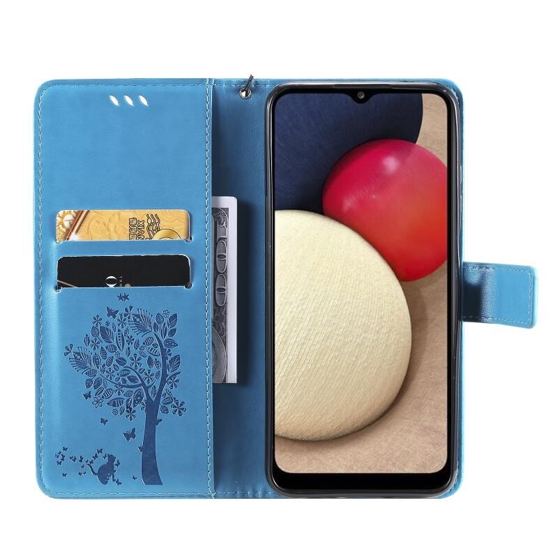 Θήκη Samsung Galaxy A03s 166mm με σχέδιο Δέντρου & Γάτας, εκτυπωμένη με θερμοτύπηση, οριζόντια, από δερματίνη PU με βάση στήριξης & θήκες για κάρτες & πορτοφόλι & κορδόνι (Πράσινο)