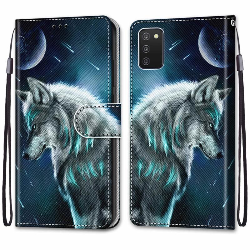 Θήκη τηλεφώνου δέρματος οριζόντιας αναδίπλωσης με σχέδιο σταυρωτής υφής και χρώματα για Samsung Galaxy A03s 166mm, με βάση, θήκες καρτών, πορτοφόλι και κορδόνι (Σκεπτικός Λύκος)