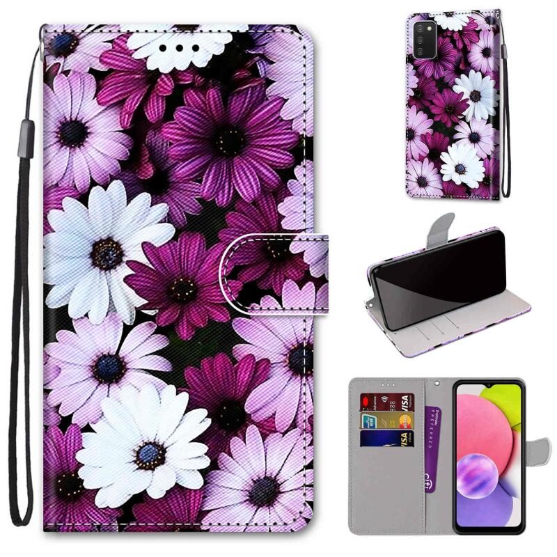Θήκη τηλεφώνου από δέρμα PU με οριζόντιο άνοιγμα για Samsung Galaxy A03s 166mm, με πολύχρωμο σχέδιο, ανάγλυφη υφή, βάση στήριξης, θήκες για κάρτες, πορτοφόλι και κορδόνι (Πολύχρωμο στρώμα (Χρυσή αλυσίδα, Γκρίζο Γατάκι))