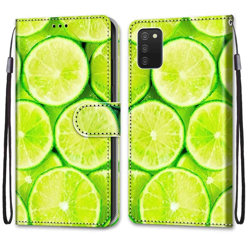 Θήκη τηλεφώνου από δέρμα PU με οριζόντιο άνοιγμα για Samsung Galaxy A03s 166mm, με πολύχρωμο σχέδιο, ανάγλυφη υφή, βάση στήριξης, θήκες για κάρτες, πορτοφόλι και κορδόνι (Πολύχρωμο Στρώμα (Λάιμ))