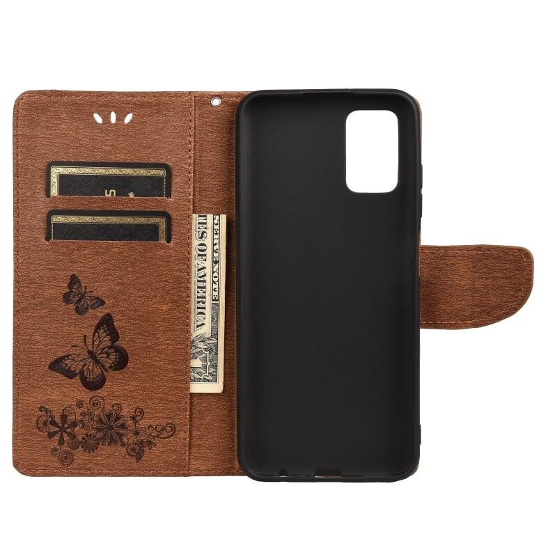 Θήκη Samsung Galaxy A03s 166mm, vintage, ανάγλυφη, με σχέδιο λουλουδιών και πεταλούδας, οριζόντια, από δέρμα με θήκη για κάρτες, στήριξη, πορτοφόλι και κορδόνι (Μαύρο)