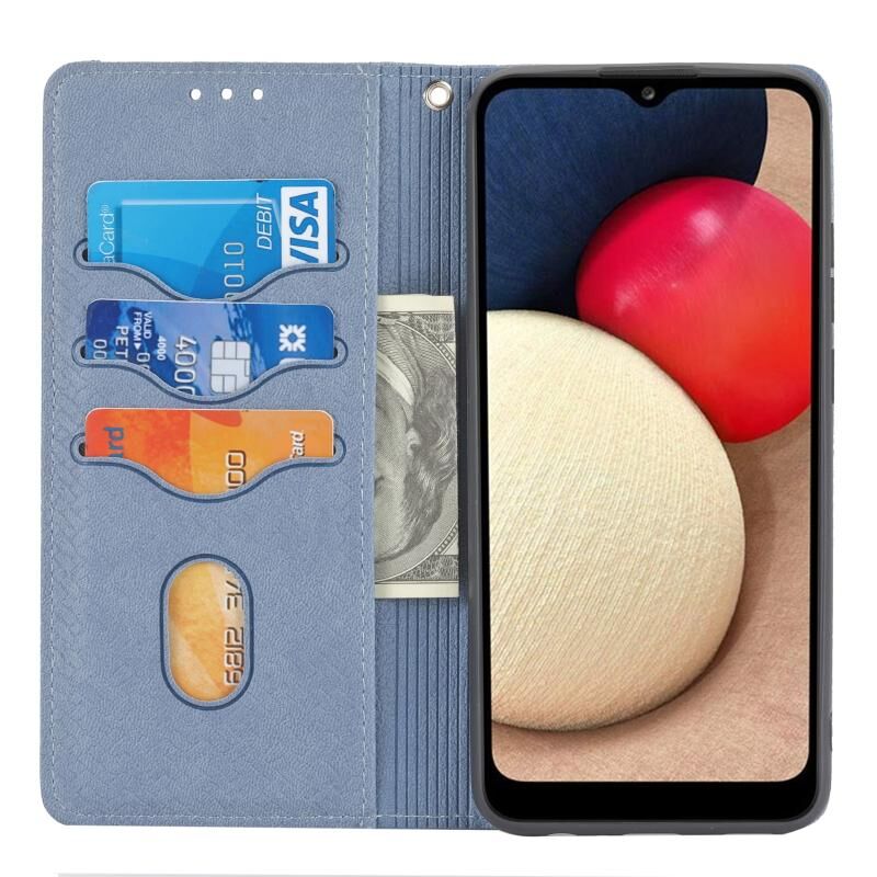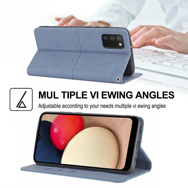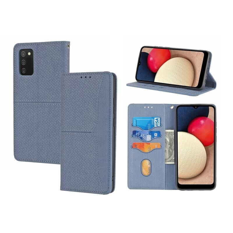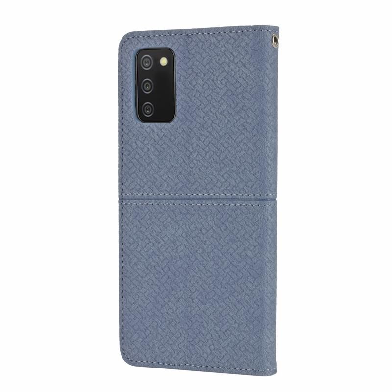 Για Samsung Galaxy A03s 166mm υφαντά υφή ραφή μαγνητική υπόθεση τηλέφωνο δέρμα (γκρι)