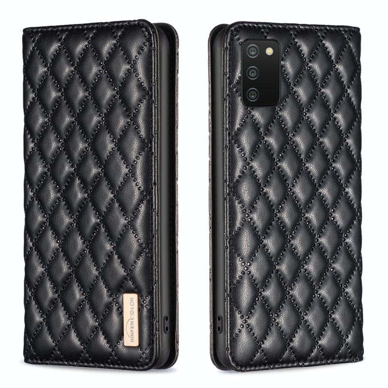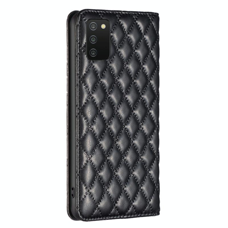 Θήκη τηλεφώνου Samsung Galaxy A03s / A02s, Δερμάτινη, Πτυσσόμενη, με Μαγνητικό Κλείσιμο και Σχέδιο Διαμαντόπλεγμα (Μαύρο)