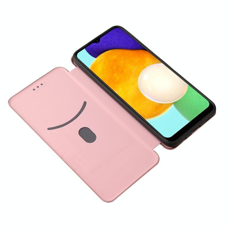 Θήκη για Samsung Galaxy A03s με υφή ανθρακονήματος, οριζόντια, από TPU + PC + Δερματίνη PU με θήκη για κάρτες (Μαύρο)