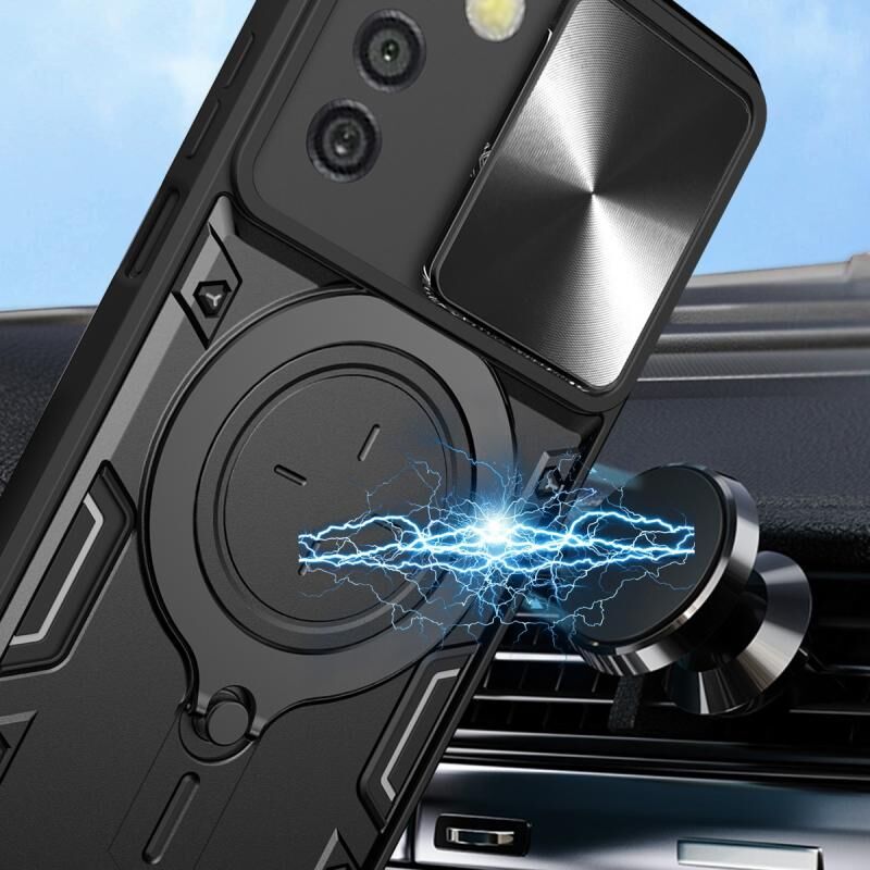 Θήκη κινητού τηλεφώνου για Samsung Galaxy A03s με υφή CD, συρόμενο προστατευτικό κάμερας και μαγνητική βάση (Ροζ)
