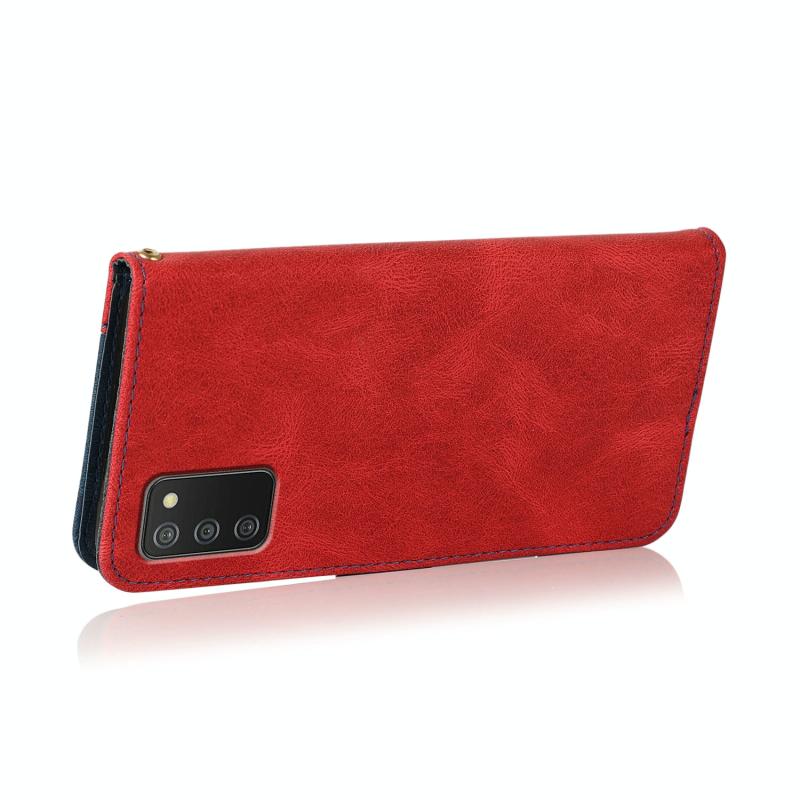 Θήκη τηλεφώνου Samsung Galaxy A03s από δέρμα με ραφές σε δύο χρώματα (Καφέ Κόκκινο)