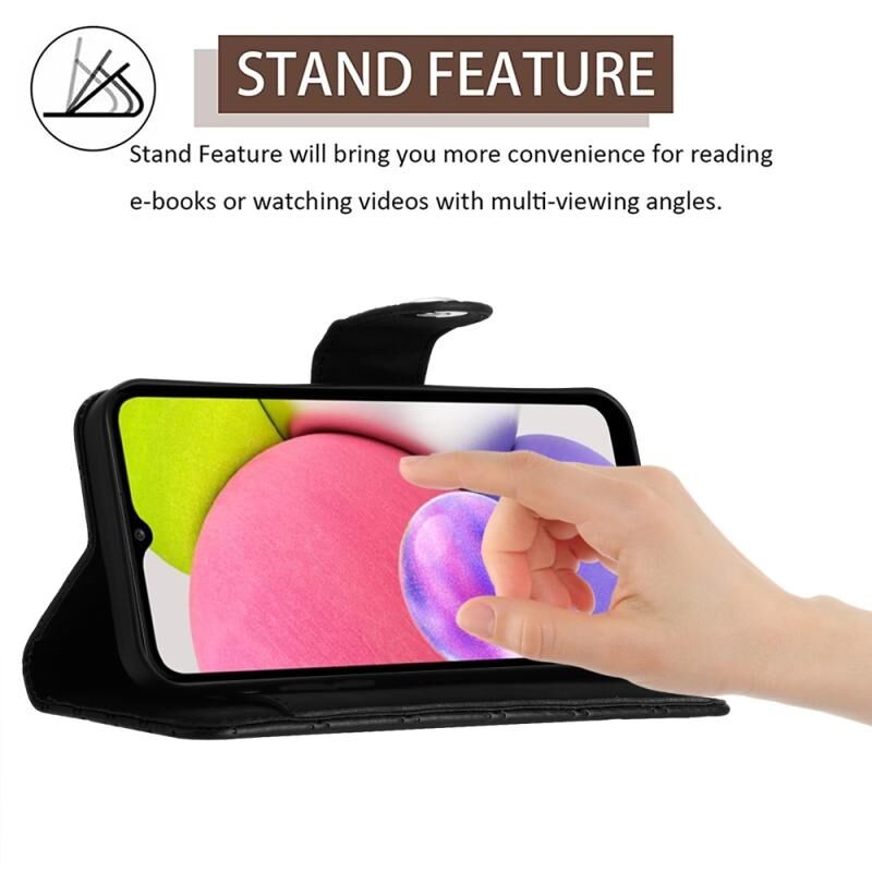 Για Samsung Galaxy A03s ΕΕ Ρομβική υφή Flip δερμάτινη θήκη τηλεφώνου με μακρύ κορδόνι (Μαύρο)