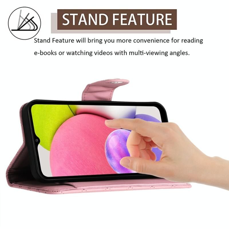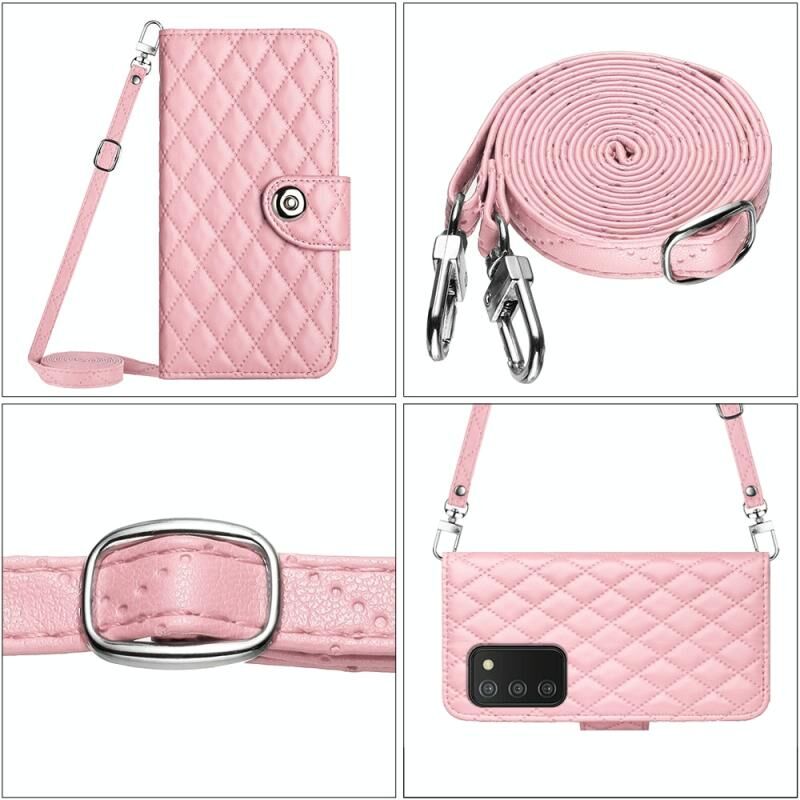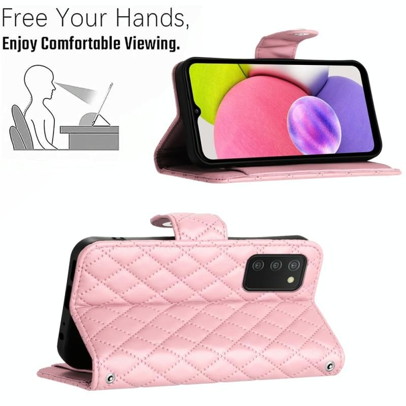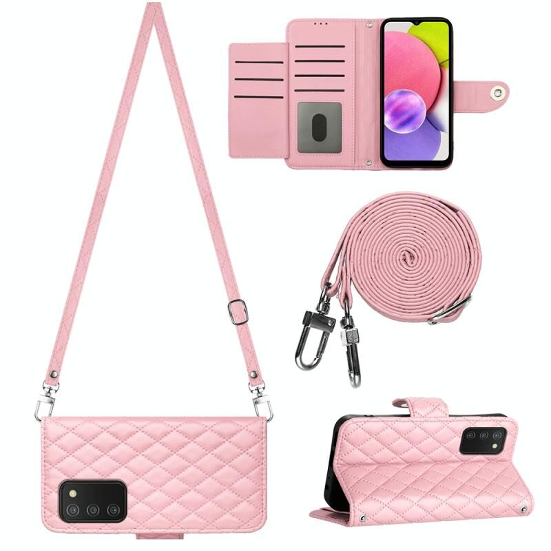 Για Samsung Galaxy A03s ΕΕ Ρομβική υφή Flip δερμάτινη θήκη τηλεφώνου με μακρύ κορδόνι (ρόζ)